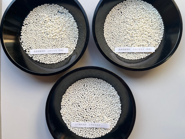 お餅の柔らかさが長持ちし伸びがよくお菓子にも適した「ふわりもち」、コシ、粘りが強く甘味のよい「ココノエモチ」の2品種が島根県飯南町から入荷しました。どちらも特別栽培米(ネオニコ系不使用)です。